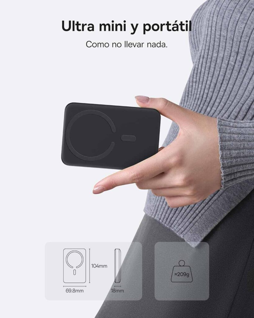 La comodidad de la carga inalámbrica y la velocidad de un cable, todo en un diseño mini. Con su fuerte agarre magnético, se acopla perfectamente a tu iPhone para una carga estable y segura. Y si necesitas velocidad, su puerto USB-C ofrece hasta 22.5W de carga rápida. Con 10.000mAh, es la power bank magnética perfecta para el día a día.