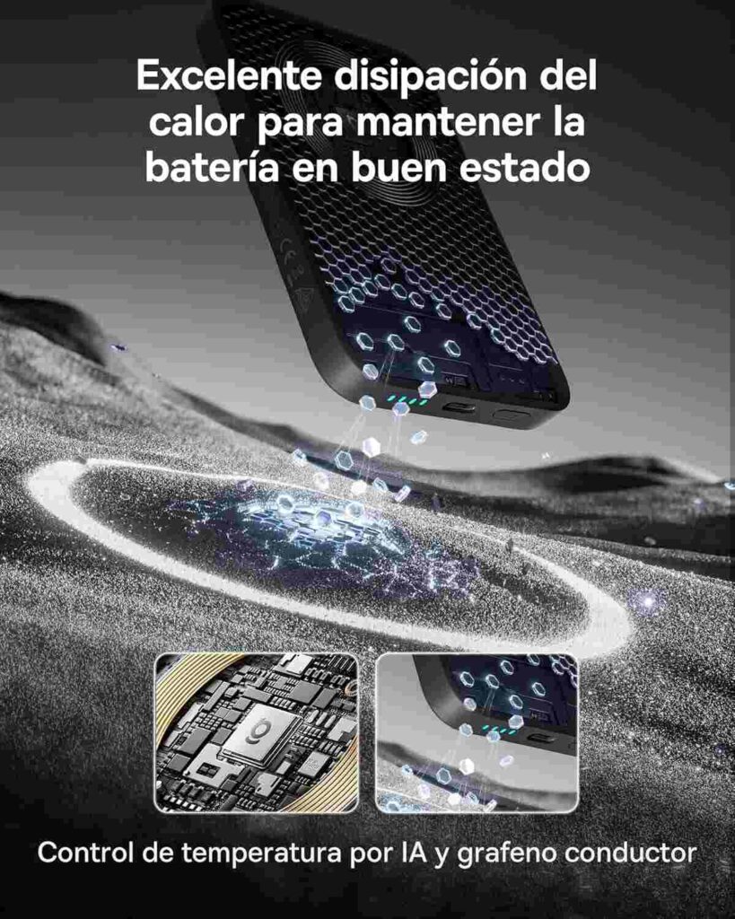 Uno de los problemas más comunes de los power banks magnéticos es el sobrecalentamiento. El EnerFill Qi2 incorpora un sistema de gestión térmica inteligente que hemos puesto a prueba: