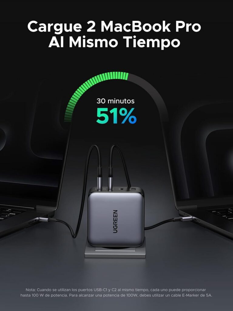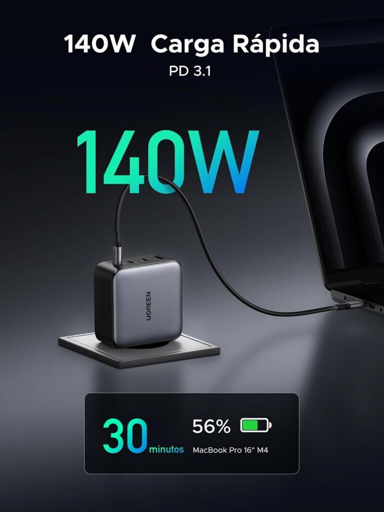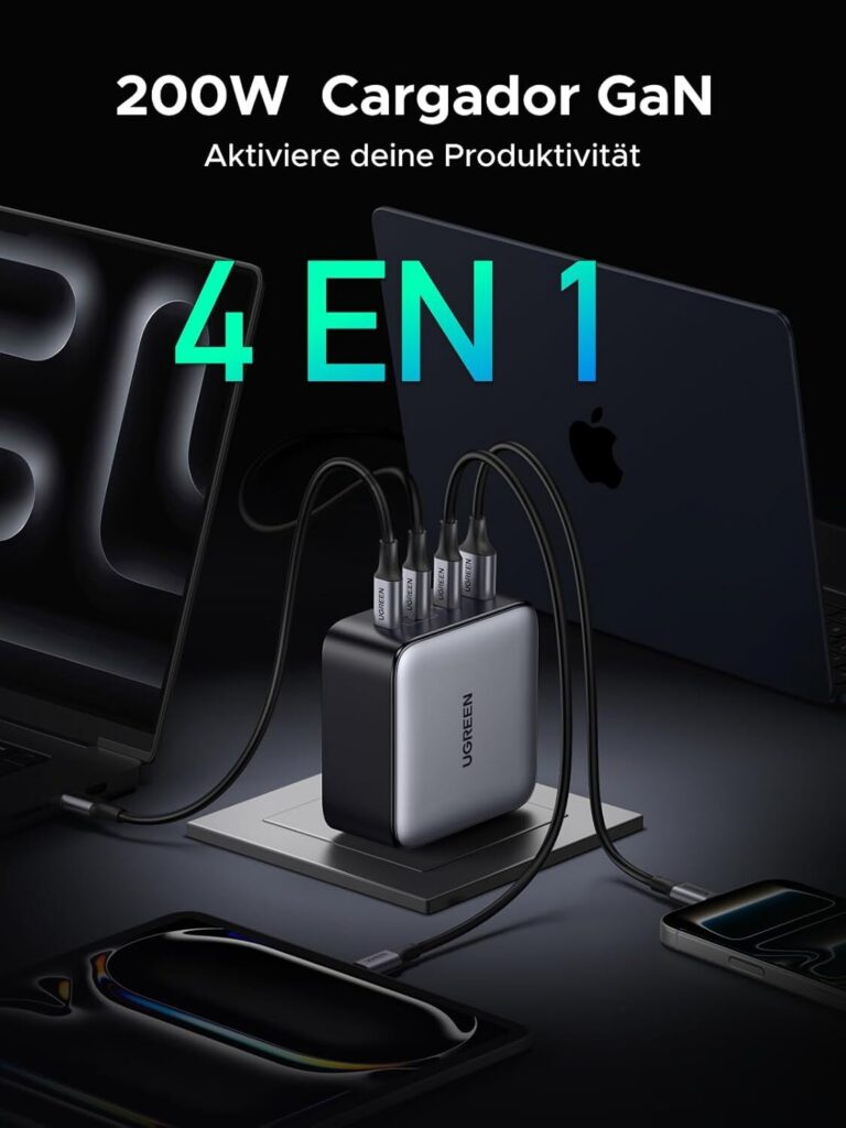 El Ugreen Nexode 200W – 2026 es una opción muy sólida si buscas una estación compacta con potencia alta, reparto inteligente y buena compatibilidad real con móvil, tablet y portátil. No es magia: necesita cables adecuados y entender que los 200W se distribuyen, no se duplican. Pero, usado como toca, simplifica mucho tu escritorio y evita llevar varios cargadores encima.